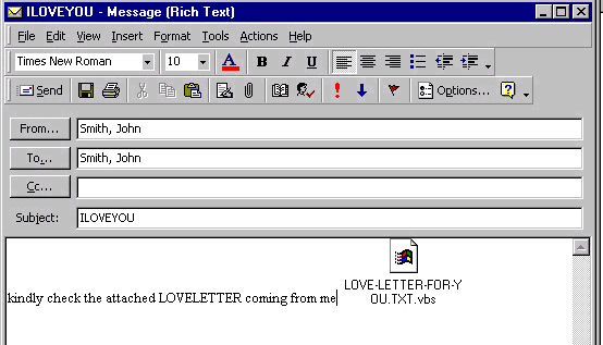 2.- I Love You: Uno de los más conocidos, llegó allá por el año 2000, disfrazado de correo electrónico con tintes de romanticismo. En un tiempo donde los usuarios eran mucho más ingenuos y los filtros anti-spam claramente mejorables consiguió infectar a más de 50 millones de equipos con gran rapidez. El virus del amor generó 5.500 millones de dólares en pérdidas, afectando a entidades tan importantes como el Pentágono o el Parlamento Británico, además de a numerosas empresas españolas.
