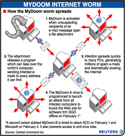 4.-MyDOOM: Tuvo el “honor” de ser calificado por la propia Microsoft como el virus informático que más destrucción ha provocado en toda la historia y surgió en 2004.