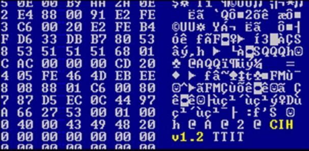1.-Virus CHI o Chernobyl: Apareció en 1998 y puso en el punto de mira a los sistemas equipados con Windows 95, 98 y Me. Se estima que infectó a un total de 60 millones de equipos, provocando unas pérdidas totales que rondaban los 1.000 millones de dólares, debido especialmente al valor de la información que destruía. Una vez dentro del equipo infectado CHI eliminaba la información del equipo, pero también podía llegar a suprimir la BIOS, de forma que hacía imposible el arranque.